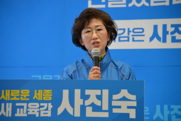 [충청뉴스 최형순 기자] 정책발표에 앞서 사진숙 세종시 교육감 예비후보는 "지난 25일(월) 김대유, 유문상, 최정수 예비후보에게 단일화를 제안했다"고 밝혔다.