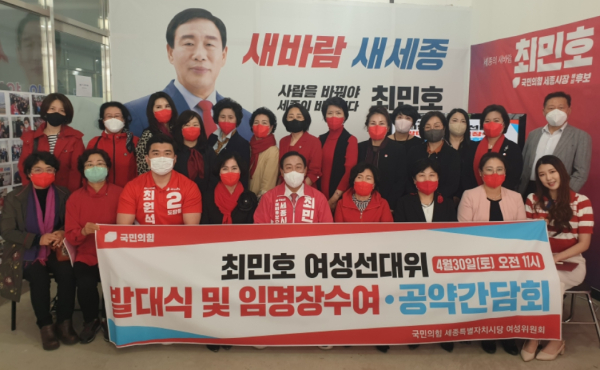 [충청뉴스 최형순 기자] 최민호 국민의힘 세종시장 예비후보 여성선거대책위원회 발대식이 30일 오전 선거사무실(대평동 58)에서 개최됐다.