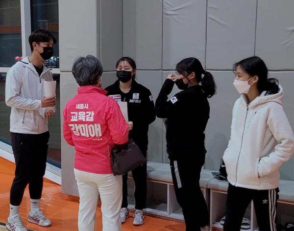 이에 강 예비후보는 지난 달 세종시 장군면에 위치한 세종스포츠센터를 방문해 관계자들을 만나 현장의 목소리를 경청했으며, 최근 세종특별자치시 체육단체들이 교육감으로 강미애 예비 후보를 지지하는 지지선언이 이어지고 있다.