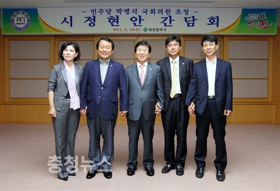 염홍철 대전시장과 민주당 박병석 국회의원(대전 서구갑)은 10일 시정현안 간담회를 갖고 대전시 국비확보를 위해 초당적 협력을 약속했다.