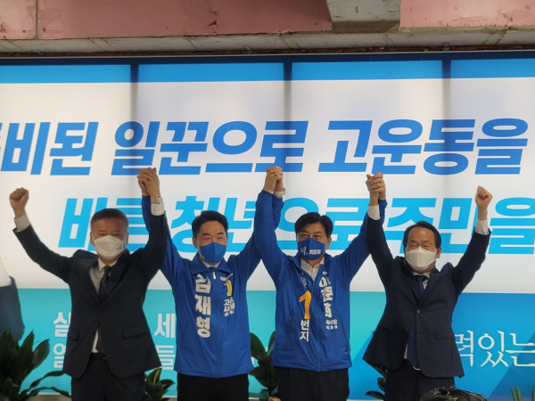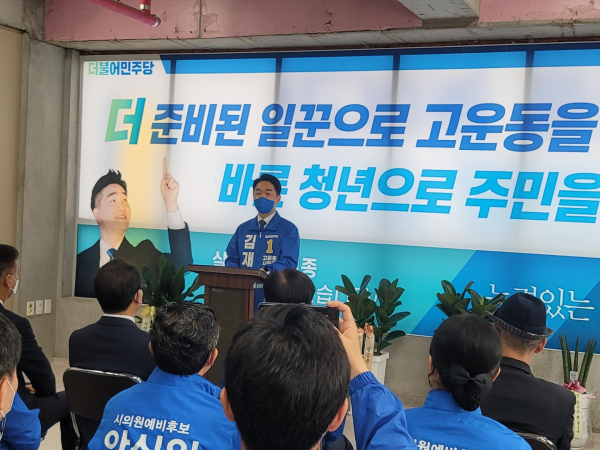 김재형 후보는 "더 준비된 일꾼으로 고운동을 높이고, 바른청년으로 시민이 주인이 되는 사회, 주민을 섬기겠다“고 밝혔다.