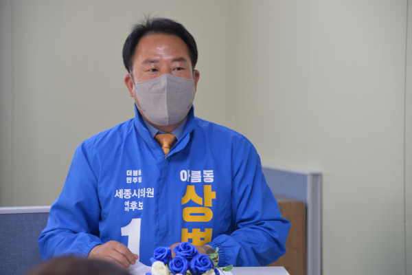 재선에 도전하는 상 후보는 세종시의회 현역 의원 중 유일하게 제9선거구(아름동)에서 단수 후보로 일찌감치 확정됐다.