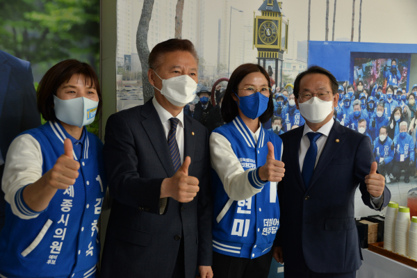 이날 개소식에는 강준현·홍성국 국회의원을 비롯해 이춘희 세종시장 후보 그리고 함께 시의원에 도전장을 던진 같은 당 소속 후보들이 대거 참석했다.
