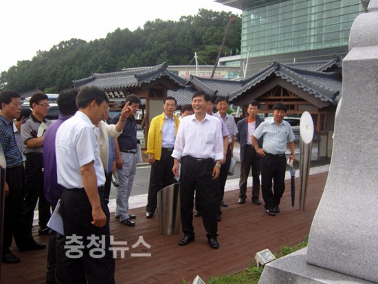 ▲ 박동철 금산군수가 엑스포관련 설명을 듣고있는 모습