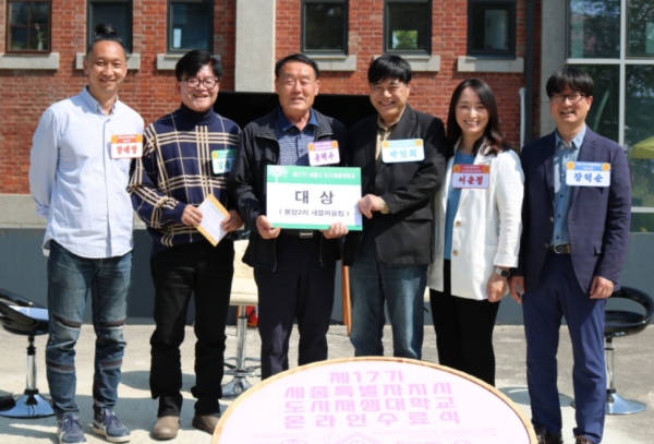 교육과정을 마친 후에는 온라인 투표·전문가 평가 등을 통해 수상팀을 선정, 대상에는 봉암2리 새뜰마을팀(팀장 윤택수)이, 최우수상에는 나성동 가로수길 활성화팀(팀장 김형동)이 선정됐다.