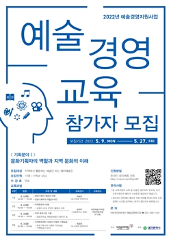 [충청뉴스 이성현 기자] 대전문화재단이 지역 예술인(예비예술인)의 현장 실무역량 강화를 위한 문화기획분야 예술경영교육을 실시한다.