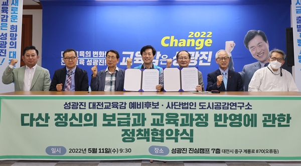 성광진 예비후보는 10일 (사)도시공감연구소와 정책협약을 가졌다. 협약은 다산 정신의 보급 및 교육과정 반영 등 내용이 골자다.