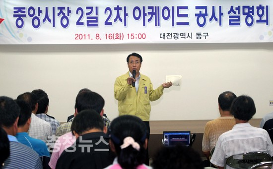 대전 동구(구청장 한현택)는 중부권 최대 전통시장인 중앙시장에 주차빌딩 및 중앙시장 2길 1구간 아케이드 설치공사를 완료하고, 2구간 아케이드 설치를 위해 16일 중앙시장 활성화구역 상인회 회의실에서 상인들을 대상으로 설명회를 가졌다.
