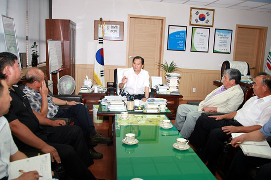 청양군(군수 이석화)은 지난 12일 군수실에서 이석화 청양군수, 군 관계자, 택시업계대표자 등 10여명이 참석한 가운데 지역별택시총량제문제, 택시대기승강장 확대 사항 등 여러 가지 현안사항에 대한 간담회를 가졌다.