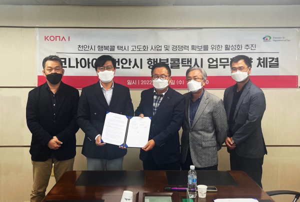 코나아이는 지난 11일 천안시 행복콜택시와 ‘천안시 행복콜 택시 고도화 사업 및 경쟁력 확보를 위한 활성화 추진’ 업무협약을 체결했다.