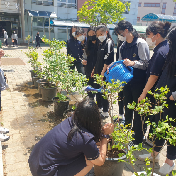 1학년은 교실 안에서 다양한 작은 식물을 가져와 교실 속의 작은 정원을 만들고, 2학년은 학교 화분에 블루베리 모종을 가져와 심고 각 반의 특색에 맞는 이름표를 만들어 붙여주었다.