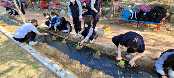 이에 고광석 온양여자중학교장은 “학생들과 함께 진행한 행사를 통해 자연친화적인 삶을 학교에서 학생들이 느낄 수 있었기를 바란다"라며, "앞으로도 텃밭 가꾸기와 모심기를 통해 환경을 사랑하고 아끼며, 생명을 소중히 여길 수 있는 인성교육의 장이 학교 안에서 진행될 수 있기를 바란다”고 격려했다.
