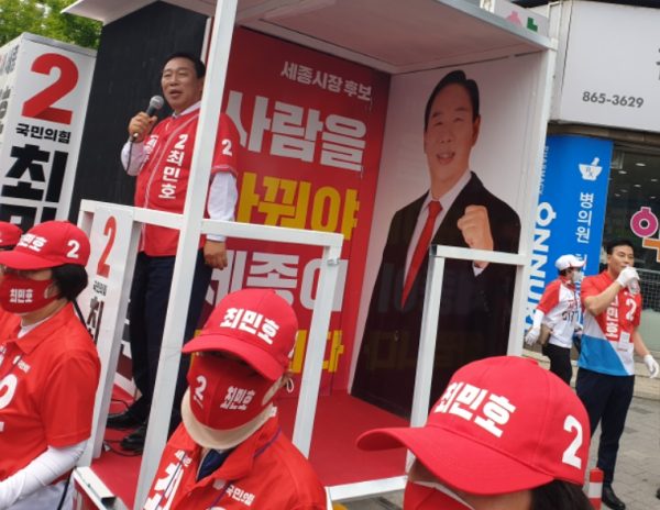 이 자리에서 최 후보는 “그동안 나라를 망쳐 국민을 실망시키고, 세종시의 각종 비리로 얼룩져왔던 민주당을 나가라는 바람이 세차게 불고 있다”고 말했다.