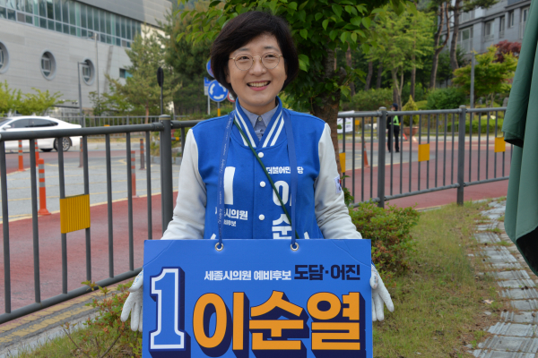 [충청뉴스 최형순 기자] 세종시의회 의원 선거 제8 선거구(도담,어진) 더불어민주당 이순열 후보가 20일 한뜰마을 3단지 연세유치원 앞에서 거리 유세에 나섰다.