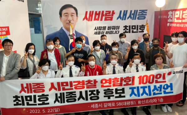 이어 시민경찰연합회(회장 김범수) 100인의 최민호 후보 지지를 선언했다.