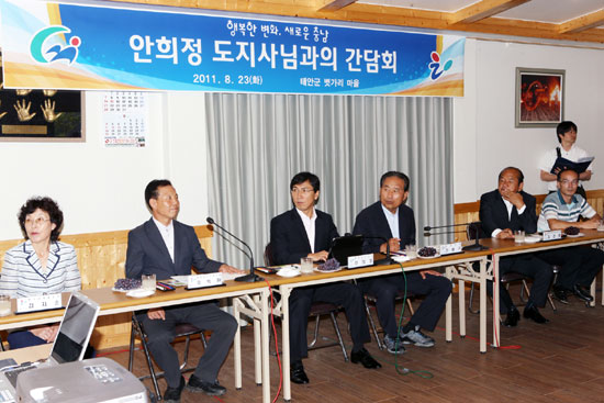 먼저 이원면 볏가리 마을을 방문한 안지사는 지역주민 20명과 만난 자리에서 “지난 2007년 원유 유출사고의 어려움을 극복한 것은 주민들의 의지와 전국에서 찾아준 125만 자원봉사자의 힘이었다”며 위로의 마음을 전했다.
