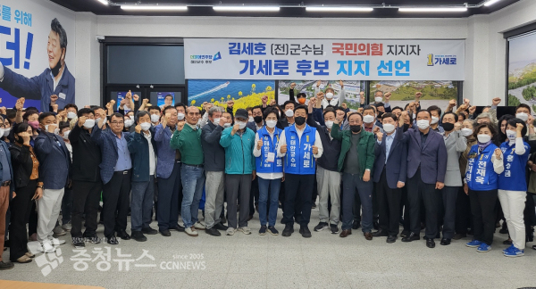 이날 선언식에서 최 선대위원장은 “6.1일 지방선거에서 반드시 가세로 후보님이 당당히 1위로 입성하는 것을 믿어 의심치 않는다”라며 “가세로 후보가 당당히 군청으로 입성할 수 있도록 최선의 노력을 다하겠다”고 말했다.