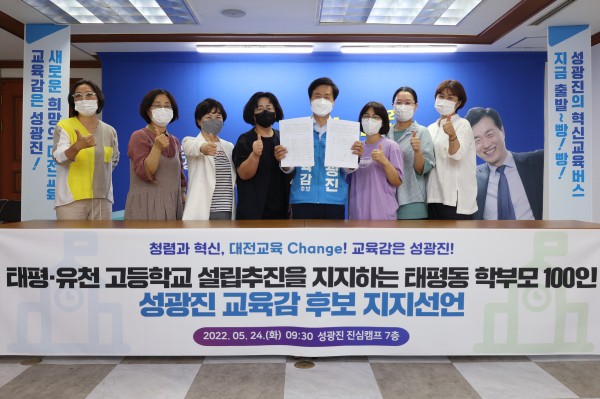 [충청뉴스 이성현 기자] (가칭)태평고 설립을 지지하는 태평동 학부모 115명이 성광진 대전시교육감 후보를 적극 지지한다고 24일 밝혔다.