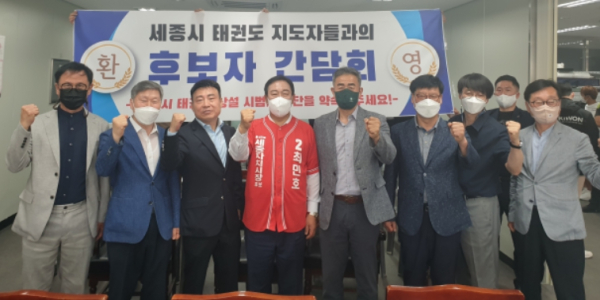 [충청뉴스 최형순 기자] 최민호 국민의힘 세종시장 후보는 24일 세종지역대학 총 학생회장단과 세종시 태권도 협회(회장 윤형권)에서 체육인들에게 필요한 정책 간담회를 개최했다.