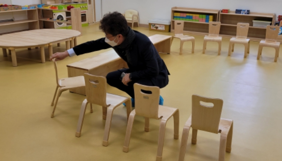 현재 교실 의자는 "8년 주기로 교체 시행되는데, 시기를 좁혀 단계적으로 편안하게 바른 자세를 유지할수 있는 인체공학 의자로 교체하겠다"고 말했다.