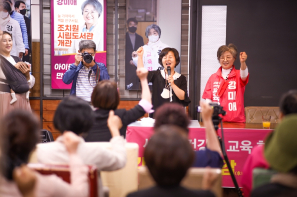 또한 이념이 과잉된 민주시민 교육이 부각되거나 노동, 인권, 평등만 과도히 주입시키는 것을 막기 위해 목소리를 높여줬다. 현재 이뤄지는 교육에 대해 문제를 제기하고 견인, 견제 요청에 응한 후보는 강 후보가 유일하다"라고 말했다.