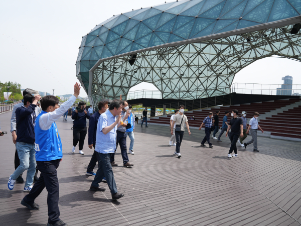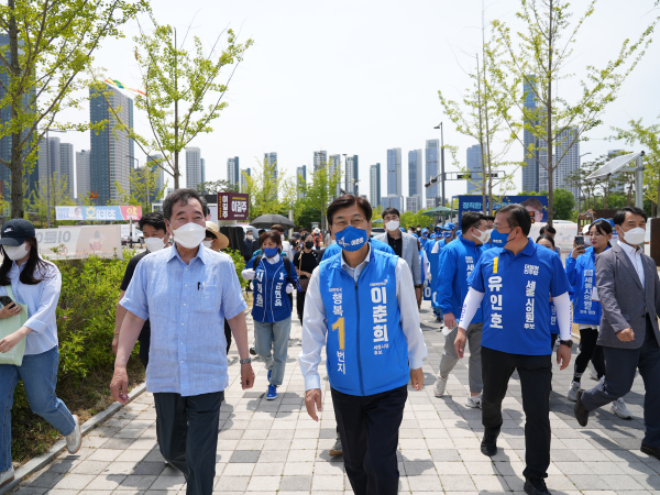 [충청뉴스 최형순 기자] 이낙연 전 국무총리는 28일(토) 오후 1시 30분부터 이춘희 세종시장 후보와 함께 세종호수공원을 시작으로 국립수목원까지 도보 유세를 진행했다.