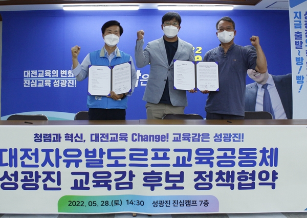 [충청뉴스 이성현 기자] 성광진 대전시교육감 후보가 28일 전국여성노동조합 대전충청지부와 대전자유발도르프 교육공동체와 정책협약을 맺었다고 밝혔다.