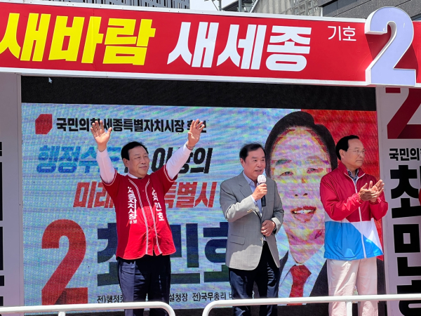 이어 “대전의 위성도시로 전락되고 있는 현실이 안타깝다”며 “당초 꿈꿔왔던 세종시로 발전시켜 줄 후보는 최민호다. 최민호를 지지하면 행정수도가 완성된다”며 최 후보 지지를 호소했다.