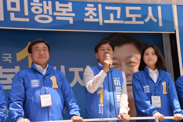이날 거리유세에는 김경만(비례대표) 의원, 이춘희 시장 후보, 윤호중·박지현 공동상임선대위원장, 강준현(세종을) 의원 등이 함께했다.