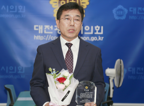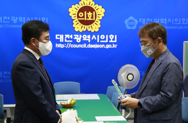 3일 오전 시의회에서 열린 감사패 전달식에는 김 공보팀장과 총무담당관실 인사들을 비롯해 시의회 등에 출입하는 대전 내 다양한 언론사 기자들이 자리했다.