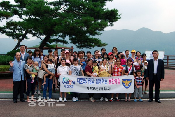 대전대덕경찰서 백광천 서장 등 경찰관 6명은 사회복지관에서 한국어 공부에 열심인 결혼이주여성 40여명과 함께 드넓은 대청호반을 바라보며 상호이해와 인식을 개선하는 뜻 깊은 자리를 가졌다.