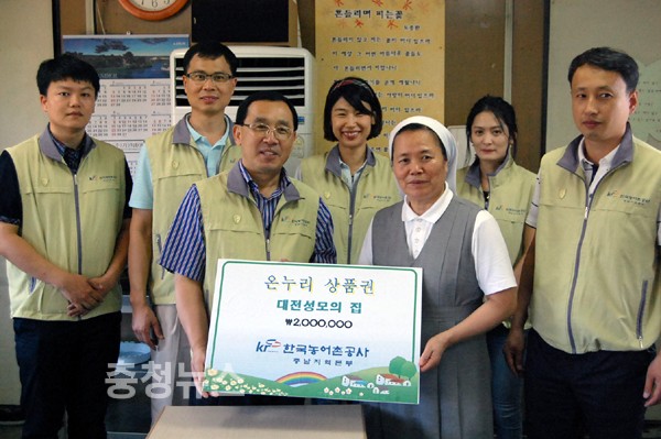 ▲ 한국농어촌공사 충남지역본부가 성모의 집을 방문해 온누리 상품권을 전달했다.