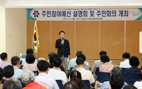 대전 유성구는 1일 온천 2동 주민센터에서 허태정 유성구청장과 지역주민 등 100여명이 참석한 가운데 주민참여예산제 동 순회 설명회 및 주민회의를 개최했다.