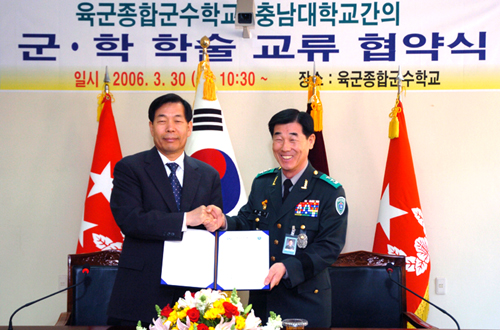 자운대 육군종합군수학교에서 충남대는 3월 30일(목) 오전 11시 30분 육군종합군수학교(자운대)에서 양현수 총장과 윤명기 육군종합군수학교장 등 양측 기관 관계자들이 참석한 가운데 학-군 상호협력을 위한 학술교류 협정식을 가졌다. 저작권자 © 충청뉴스 무단전재 및 재배포 금지 홍세희 기자 다른기사 보기 기사가 마음에 드셨나요? 충청뉴스 좋은 기사 후원하기 1,000원 3,000원 5,000원 10,000원 30,000원 50,000원 직접입력 비회원 약관동의하기 ※ 소중한 후원금은 더 좋은 기사를 만드는데 쓰겠습니다.