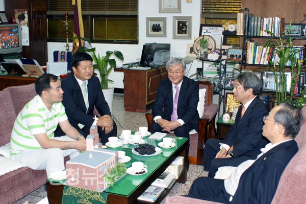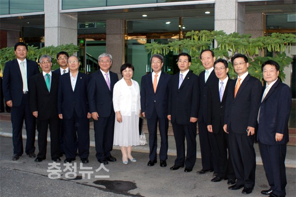 ▲ 사진 왼쪽부터 김거수 충청뉴스 대표, 김광석 前 지질자원연구원 감사, 허상봉 담임 목사, 정운찬 동반성장위원장, 강용식 행복도시건설자문위원장
