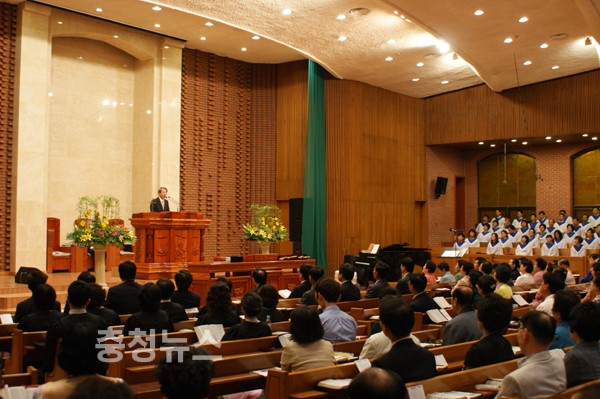 ▲ 정운찬 동반성장위원장이 동대전교회에서 간증·설교를 했다.