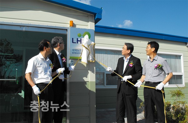 한국토지주택공사 대전충남지역본부(본부장 성증수)는 6일 고객과 함께하는 현장중심 경영을 위해 대덕특구 1단계 사업 현장 내에 대덕노은사업단 사무실을 마련하고 현판식을 가졌다.