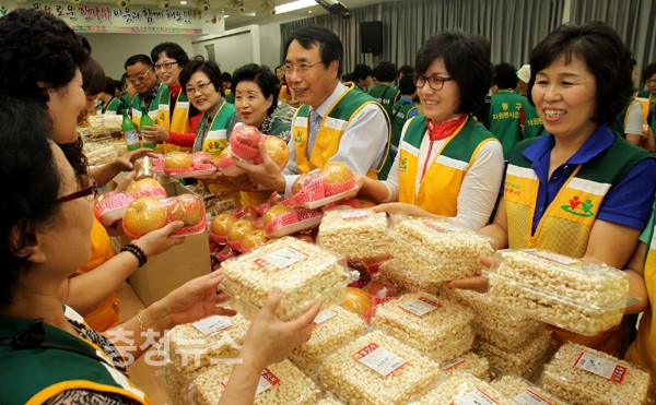 대전 동구(구청장 한현택)는 민족 최대의 명절 추석을 맞아 함께 행복한 의 명절 분위기 조성을 위한 ‘사랑의 선물 바구니 만들기’ 행사를 8일 중앙시장 이벤트 홀에서 개최했다.