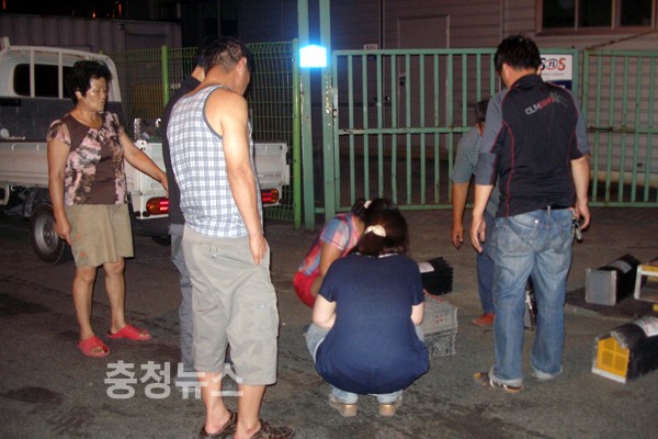 ▲ 호기심을 가진 동네 구민들이 포획된 고양이를 살펴보고 있다.