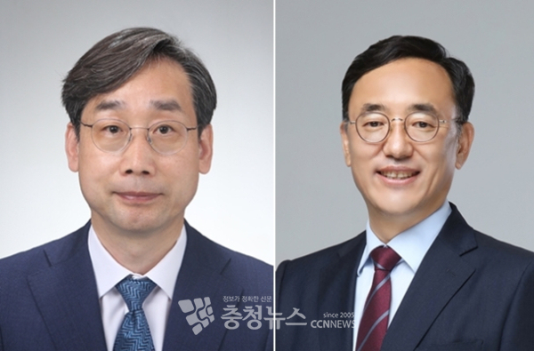 29일 실시된 한밭대 제9대 총장 임용후보자 선출 선거에서 오용준 교수(왼쪽)가 1순위를 차지했다. 임재학 교수(오른쪽)는 2순위에 들었다.