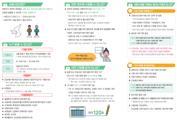 상병수당은 서로 다른 부상·질병에 대해 여러 차례 신청이 가능하며, 1년간 최대 120일까지 지급된다.