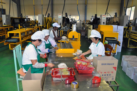 ▲ 정일제과 직원들이 전병을 포장하고 있다.