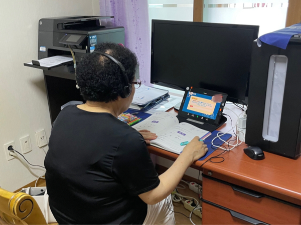 가정에서 1:1 수업을 듣고 있는 프로그램 참가자/아산시 제공