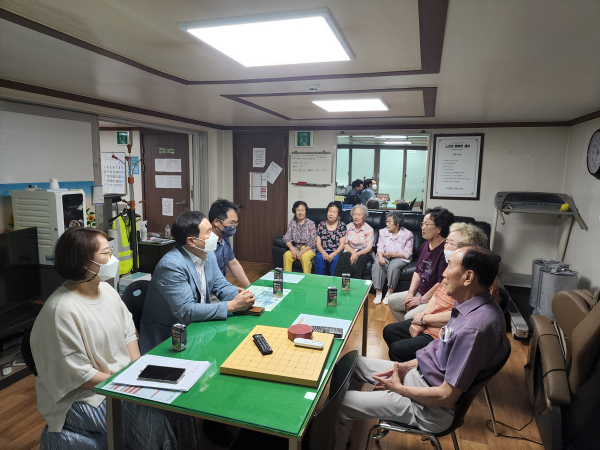 경로당을 방문해 어르신들의 불편사항을 듣는 금구연 성정2동장