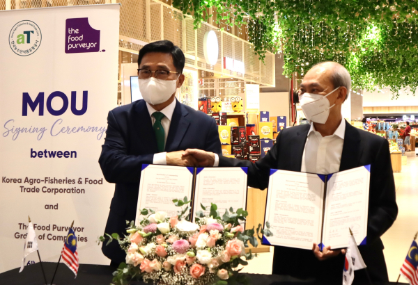 더 푸드 퍼베이어는 말레이시아 내 1,2위를 다투는 식품 전문 대형유통기업으로 6개의 브랜드와 32개의 유통매장을 운영 중이며, 양사는 이번 협약을 통해 ▲ K-Food 취급 확대와 유망상품개발 ▲ 식품유통정보 교환 ▲ 수출업체와 바이어 알선 ▲ 글로벌 그린푸드 데이 등 ESG 실천 등에 힘을 합치기로 했다.