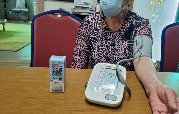 독거노인을 방문해 건강진단 활동을 펼치는 모습/천안시 제공