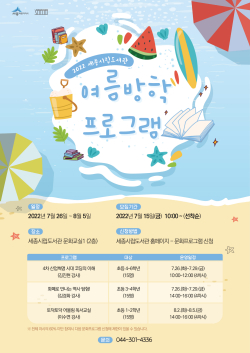 [충청뉴스 최형순 기자] 세종시립도서관이 여름방학을 맞이해 오는 26일부터 8월 5일까지 초등학생을 대상으로 여름방학 프로그램을 운영한다.