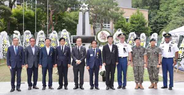 [충청뉴스 박동혁 기자] 한국전쟁 당시 천안7.8전투에서 산화한 전몰 미군용사들의 넋을 기리는 추모식이 8일 천안시 동남구 삼룡동 마틴공원에서 거행됐다.