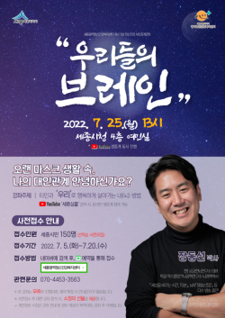 초청 강사는 세상을 바꾸는 시간, 15분, tvN 알쓸신잡2 등 다수 방송 출연으로 유명한 뇌과학자 장동선 박사로 ‘우리들의 브레인’을 주제로 탈코로나 시대 타인과 ‘우리’로 행복하게 살아가는 내(뇌) 방법을 전달할 예정이다.