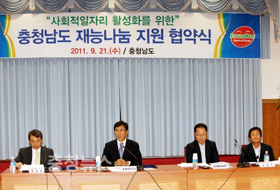 이날 협약식에서 안희정 지사는 “사회적 기업에게는 전문 지식과 경험 등이 풍부한 기관·단체의 지원이 필요하다”며 “‘재능나눔’에 동참키로 한 기관·단체의 지원은 사회적 일자리 창출뿐만 아니라 새로운 근로복지문화 형성의 계기가 될 것”이라며 적극적인 협력을 당부했다.